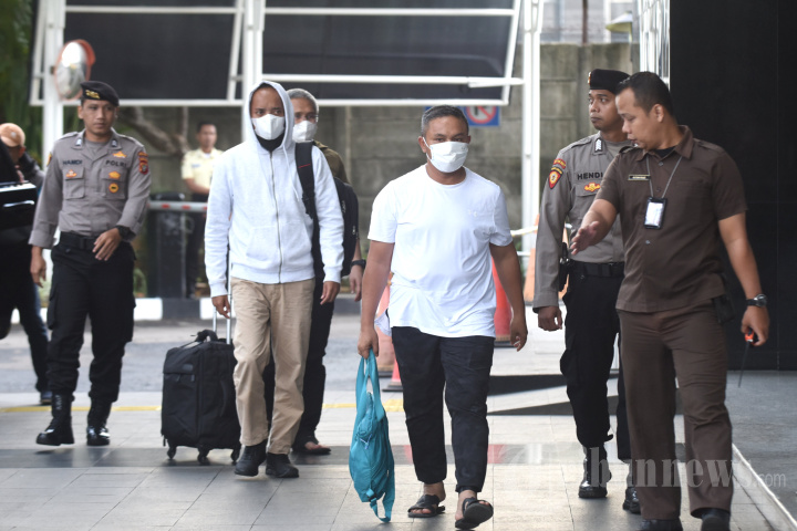 OTT KPK - Gubernur Riau Abdul Wahid bersama dua orang lainnya yang terjaring operasi tangkap tangan (OTT) tiba di Gedung Merah Putih KPK, Jakarta, Selasa (4/11/2025). Abdul Wahid bersama 8 orang lainnya ditangkap KPK beserta barang bukti dalam OTT (Operasi Tangkap Tangan) pada (3/11/2025) di Riau. TRIBUNNEWS/IRWAN RISMAWAN