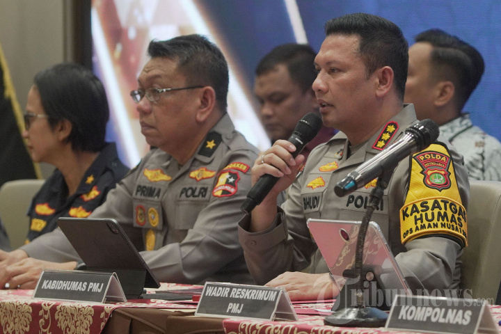 Karumkit RS Bhayangkara Polri Kramatjati, Brigjen Pol. Prima Heru Yulihartono bersama Kabid Humas Polda Metro Jaya Kombes Budi Hermanto dan Karo Labdokkes Polri Brigjen Sumy Hastry Purwanti serta pihak terkait menggelar konferensi pers terkait hasil pencocokan data medis antemortem dan postmortem kedua kerangka manusia yang ditemukan di gedung ACC Kwitang di RS Polri, Jakarta Timur, Jumat (7/11/2025). Tim Forensik Rumah Sakit (RS) Polri Kramat Jati, Jakarta Timur, merampungkan pemeriksaan dua kerangka manusia yang ditemukan di gedung ACC Kwitang, Jakarta Pusat, pada Kamis, 30 Oktober 2025. Identifikasi kedua kerangka manusia itu berdasarkan pencocokan data medis antemortem dan postmortem. Hasil identifikasi medis dua kerangka tersebut dinyatakan sebagai dua warga yang dilaporkan hilang saat kericuhan demo yakni, Reno Syahputro Dewo, 24 dan Muhammad Farhan Hamid, 23. Tribunnews/Jeprima
