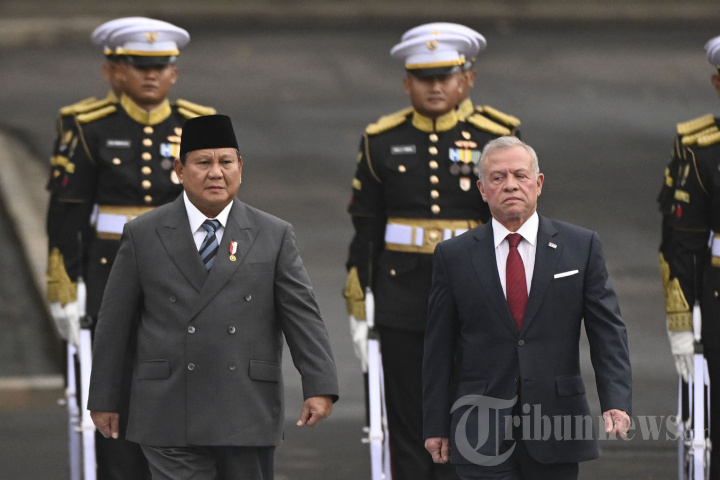 KUNJUNGAN KENEGARAAN - Presiden Prabowo Subianto bersama Raja Kerajaan Yordania Hasyimiah Abdullah II Ibnu Al Hussein melakukan pemeriksaan pasukan dalam upacara kenegaraan di Istana Merdeka, Jakarta, Jumat (14/11/2025). Kunjungan Raja Yordania tersebut dalam rangka memperkuat hubungan bilateral dan kerja sama strategis antara Indonesia dan Yordania. Tribunnews/Jeprima