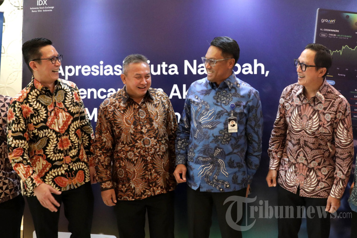 APRESIASI NASABAH - Wakil Direktur Utama Bank Mandiri Henry Panjaitan (kedua kanan) bersama Direktur Utama Mandiri Sekuritas Oki Ramadhana (kiri), Komisaris Utama dan Komisaris Independen Mandiri Sekuritas Hoesen (kedua kiri) dan Direktur Pengembangan Bursa Efek Indonesia Jeffrey Hendrik (kiri) berbincang disela-sela acara Apresiasi 1 Juta Nasabah di Jakarta, Senin (17/11/2025). PT Mandiri Sekuritas memberikan apresiasi bagi para nasabahnya dalam rangka tercapainya 1 Juta Nasabah per Oktober 2025. Mandiri Sekuritas berhasil mencapai nasabah ke 1 juta pada akhir Oktober 2025 lalu berkat hadirnya digital trading platform Growin' yang kini bisa diakses melalui berbagai channel, termasuk: Livin' by Mandiri (menu Investasi), aplikasi stand-alone di AppStore dan PlayStore, serta web based: growin.id. TRIBUNNEWS/IRWAN RISMAWAN