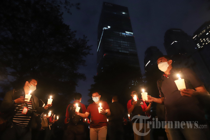 Earth Hour Jakarta (EHJ) berkolaborasi dengan Artha Graha Peduli (AGP) mengadakan Earth Hour 2022 di kawasan bisnis SCBD Jakarta pada Sabtu (26/3/2022). Earth Hour merupakan sebuah bentuk kampanye global sekaligus aksi nyata dalam memberikan ruang kebaikan untuk bumi. Earth Hour merupakan momentum pengingat kita semua untuk menerapkan gaya hidup suistainable. Tribunnews/Jeprima