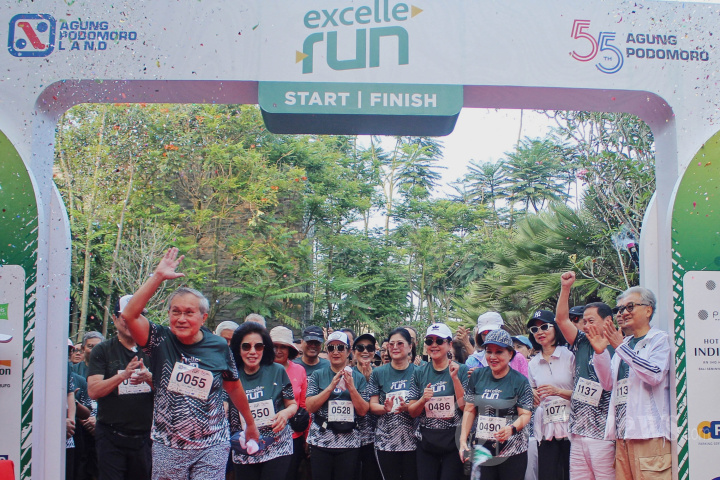 Pendiri Agung Podomoro Trihatma Kusuma Haliman (kiri) mengikuti kegiatan lari santai bersama karyawan bertajuk ExcelleRun di Lobby Ballroom Hotel Pullman Ciawi Vimalla Hills Resort Spa & Convention, Ciawi, Bogor, Sabtu (28/9/2024). Kegiatan ini merupakan acara puncak dari perayaan?hari ulang tahun ke-55 Agung Podomoro, yang diikuti oleh lebih dari 1.000 karyawan perwakilan dari masing-masing unit bisnis. TRIBUNNEWS/IRWAN RISMAWAN