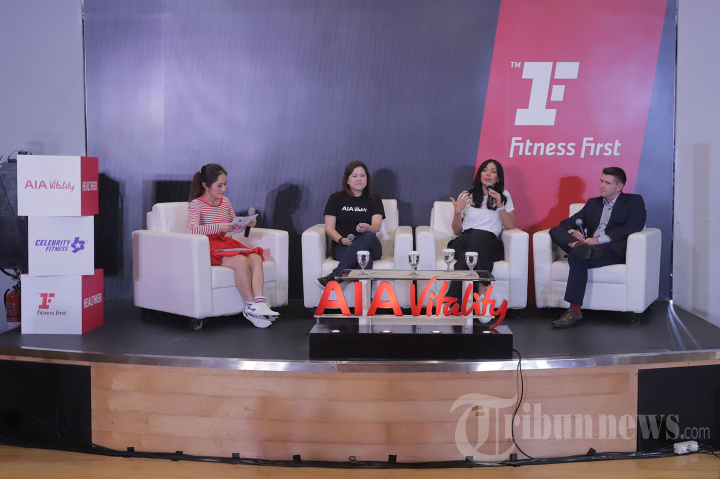 Head of AIA Vitality Jong Wie Siu, Aktris dan Health Enthusiast Adinia Wirasti, dan Chief Operating Officer Evolution Wellness David Prosser menjadi pembicara pada peluncuran fitur terbaru Gym Partner di aplikasi AIA Vitality kerjasama AIA dengan pusat kebugaran Celebrity Fitness & Fitness First (CF & FF) di Jakarta, Selasa (21/11/2023). Melalui kerjasama gym partner ini, member AIA Vitality yang juga merupakan member dari Celebrity Fitness dan Fitness First akan mendapatkan berbagai keuntungan seperti diskon membership fee sebesar 20%, tambahan 100 poin Vitality per kunjungan, dan 750 poin Vitality setiap kali melakukan fitness assessment di CF & FF, dengan bonus 750 poin Vitality jika hasil assessment baik dan tes kebugaran gratis. Kerjasama ini sejalan dengan komitmen AIA untuk untuk membantu nasabah mendapatkan hidup yang lebih sehat, lebih lama, lebih baik. Tribunnews/Jeprima