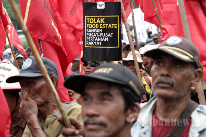 Massa tani yang tergabung dalam Aliansi Gerakan Rakyat Lawan Perampasan Tanah (GERAM TANAH) melakukan unjuk rasa di depan Gedung DPR, Jakarta, Selasa (24/9/2024). Aksi tersebut digelar dalam rangka memperingati Hari Tani Nasional 2024 dan 64 tahun kelahiran Undang-Undang Pokok Agraria (UUPA 1960) yang jatuh pada tanggal 24 September 2024. TRIBUNNEWS/IRWAN RISMAWAN