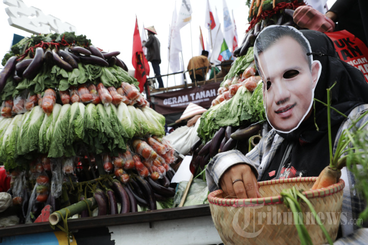 Massa tani yang tergabung dalam Aliansi Gerakan Rakyat Lawan Perampasan Tanah (GERAM TANAH) melakukan unjuk rasa di depan Gedung DPR, Jakarta, Selasa (24/9/2024). Aksi tersebut digelar dalam rangka memperingati Hari Tani Nasional 2024 dan 64 tahun kelahiran Undang-Undang Pokok Agraria (UUPA 1960) yang jatuh pada tanggal 24 September 2024. TRIBUNNEWS/IRWAN RISMAWAN