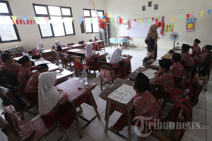 Sejumlah siswa mengikuti pelajaran di Sekolah Dasar Pasirranji 04, Desa Cireundeu, Cikarang, Bekasi, Jawa Barat, Jumat (29/11/2024). Presiden Prabowo Subianto mengklaim anggaran pendidikan tahun 2025 yang masuk dalam alokasi prioritas APBN 2025 mencapai Rp 724,3 triliun yang merupakan tertinggi dalam sepanjang sejarah Indonesia. Dirinya juga menyebutkan sector pendidikan menjadi fokus utama dengan mengalokasikan Rp 81,6 triliun untuk meningkatkan kesejahteraan guru berstatus Aparatur Sipil Negara (ASN) dan non-ASN. Tribunnews/Jeprima