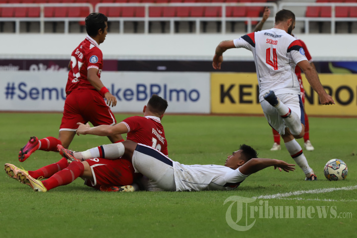 Pemain Persis Solo Rodriguez berebut bola dengan pemain Arema Bagas Adi pada pertandingan Liga 1 di Stadion Jatidiri, Semarang, Jawa Tengah, Minggu (11/12/2022). Arema mampiu membawa poin penuh usai unggul 2-1 atas Persis Solo Tribunnews/Jeprima