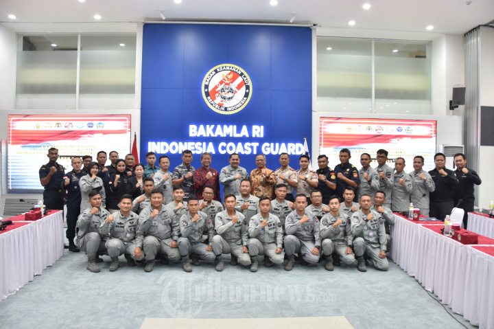 TRIBUNNEWS.COM, JAKARTA - Deputi Operasi dan Latihan (Opslat) Bakamla RI Laksda Bakamla I Gusti Kompiang tutup Latihan Bersama (Latma) Teknik Pengambilan Sample Pecemaran di Laut, bertempat di Aula II Mabes Bakamla RI, Menteng, Jakarta Pusat, Jumat (5/8/2022). Latihan bersama ditutup setelah para peserta latihan yang berdinas di Kapal Negara Bakamla RI, Kantor Kamla Zona Maritim Barat, Tengah dan Timur, serta perwakilan Kementerian dan Lembaga (K/L) seperti Polair, TNI AL, PSDKP, KPLP, dan Bea Cukai menjalani latihan praktek teknik pengambilan sample di Muara Baru, Jakarta Utara, yang dipandu oleh tim laboratorium dari Kementerian Lingkungan Hidup dan Kehutanan. //BAKAMLA RI
