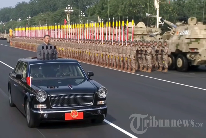 Presiden Xi Jinping mengelar Parade militer besar-besaran pada HUT ke-80 China sekaligus memperingati 80 tahun berakhirnya Perang Dunia II, China pada Rabu (3/9/2025). Unjuk kekuatan militer sekaligus simbol kebangkitan nasional di bawah kepemimpinan Presiden Xi Jinping. Parade tersebut dihadiri sejumlah pemimpin dunia, termasuk Presiden Rusia Vladimir Putin, Pemimpin Korea Utara Kim Jong Un, serta Presiden RI Prabowo Subianto. (Tangkapan Layar Kompas TV/Soure: Viory/HO)