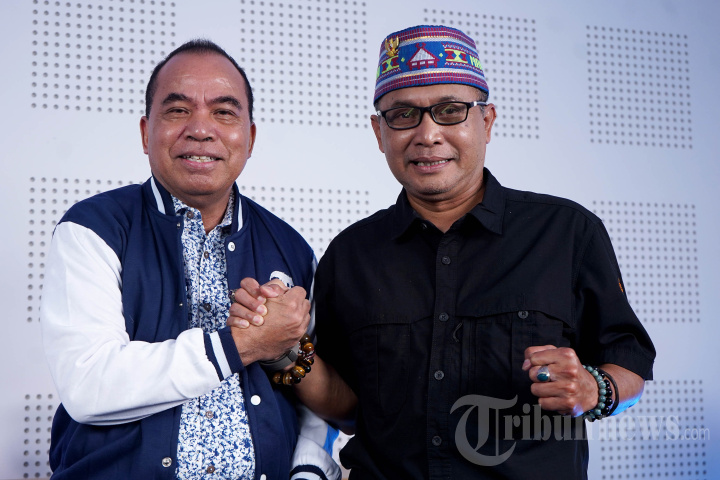 TANTANGAN MEDIA TERKINI - Jurnalis Senior Rikard Bagun (kiri) bersama Direktur Pemberitaan Tribun Network Febby Mahendra Putra (kanan) usai diwawancarai di studio Tribun Network, Jakarta, Rabu (7/5/2025). Dalam wawancara tersebut, Rikard Bagun menceritakan pengalamannya selama menjadi wartawan di Harian Kompas, terutama terkait peliputan di zona konflik. Tidak hanya itu, Rikard Bagun juga membahas mengenai tantangan media mainstream di era media sosial. TRIBUNNEWS/AKBAR PERMANA