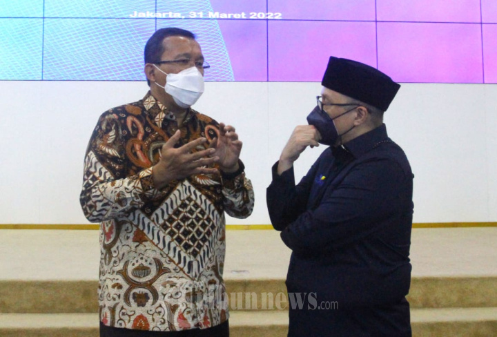 TRIBUNNEWS.COM, JAKARTA - Direktur Utama PT Bank Tabungan Negara (Persero) Tbk. Haru Koesmahargyo bersama Direktur Utama PT Taspen (Persero) A.N.S. Kosasih menunjukkan naskah Perjanjian Kerjasama (PKS) perihal Pembayaran Tabungan Hari Tua, Pensiun, Jaminan Kecelakaan Kerja, dan Jaminan Kematian Melalui Rekening di Jakarta, Kamis (31/3/2022). Melalui kerjasama tersebut, Bank BTN kembali dipercaya menjadi bank untuk pembayaran berbagai dana Taspen kepada para peserta Taspen. Adapun, Bank BTN telah menjadi bank mitra Taspen sejak 2014. Bank BTN pun terus berinovasi untuk menghadirkan layanan yang mendukung digitalisasi Taspen, salah satunya melalui BTN Taspen Smart Card. //ist/xis