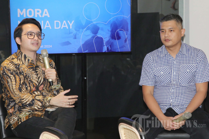 Komisaris Modal Rakyat Indonesia Wafa taftazani (kiri), dan Direktur Utama Modal Rakyat Indonesia christian hanggra (kanan) saat acara Press Conference MORA Media Day di Jakarta. Dengan semangat inovasi dan komitmen terhadap inklusi keuangan, modal rakyat Indonesia terus menjelma sebagai pionir financial technology dalam mendukung pertumbuhan bisnis di Indonesia. Melalui strategi inovatif, hubungan yang sinergi dengan regulator dan lembaga keuangan serta komitmen terhadap kepatuhan hukum, modal rakyat memperkuat visi untuk membawa dampak positif yang berkelanjutan bagi perekonomian Indonesia. Tribunnews/HO