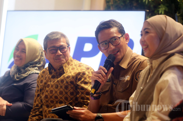 Menteri Pariwisata dan Ekonomi Kreatif (Menparekraf) Sandiaga Uno (kedua kanan) bersama Presiden Direktur Asia Pacific Rayon (APR) Basrie Kamba (kedua kiri) dan Dirjen Pengembangan Ekspor Nasional Kementerian Perdagangan Mardyana Listyowati (kiri) menjadi pembicara dalam Penta Talk Inkubasi Modest Fesyen Tahap II, yang merupakan rangkaian acara road to Jakarta Muslim Fashion Week 2025, bertempat di Jakarta Fashion Hub, Rabu (28/08/2024). TRIBUNNEWS/HO