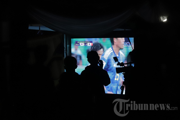 Tim Kampanye Nasional (TKN) Prabowo-Gibran menggelar nonton bareng Piala Asia 2024 di depan kediaman Prabowo Jalan Kertanegara, Jakarta, Rabu (24/1/2024). Nonton bareng Piala Asia Indonesia vs Jepang ini bersama Millenial Gen Z dihadiri Wakil Ketua TKN Prabowo-Gibran, Juri Ardiantoro dengan dimeriahkan dengan iringan live akustik merupakan bentuk dukungan untuk Timnas Indonesia bertanding pada Piala Asia Cup 2023. Tribunnews/Jeprima