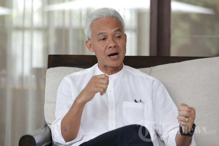 Calon Presiden nomor urut tiga Ganjar Pranowo menjawab pertanyaan saat diwawancarai di Jakarta, Rabu (13/12/2023). TRIBUNNEWS/IRWAN RISMAWAN