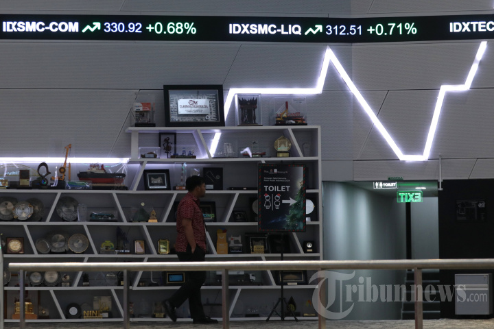 Pekerja melintas di dekat layar digital yang menampilkan pergerakan Indeks Harga Saham Gabungan (IHSG) di Bursa Efek Indonesia (BEI), Jakarta, Selasa (10/12/2024). Indeks Harga Saham Gabungan (IHSG) alhasil ditutup melemah dengan kehilangan 17,94 poin (0,24%) ke level 7.419,78 di Sesi I pada Selasa (10/12/2024) usai bergerak fluktuatif sejak pagi hari tadi, di tengah-tengah sentimen data ekonomi RI terbaru yaitu Penjualan Ritel pada Oktober yang melambat. TRIBUNNEWS/IRWAN RISMAWAN