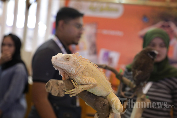 PAMERAN HEWAN - Pengunjung melihat hewan iguana di Indonesia International Pet Expo (IIPE) 2025 di Indonesia Convention Exhibition (ICE), Kabupaten Tangerang, Banten, Minggu (2/11/2025). Pameran tersebut menjadi ajang kolaborasi dan perayaan bagi para penggemar hewan, komunitas, hingga pelaku industri pet care dari dalam dan luar negeri. TRIBUNNEWS/IRWAN RISMAWAN