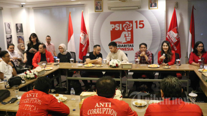 Ketua Umum PSI Kaesang Pangarep (empat kanan) memimpin rapat perdana dengan para jajaran DPP PSI di Kantor DPP PSI, Tanah Abang, Jakarta Pusat, Selasa (26/9/2023). Warta Kota/Yulianto