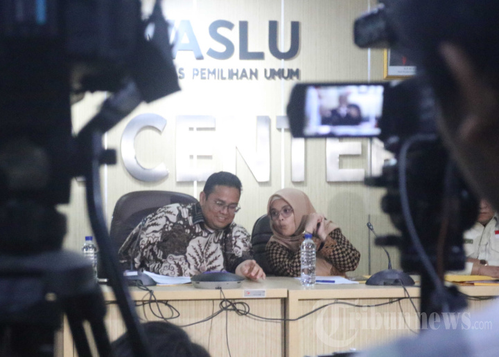 Ketua Bawaslu Rahmat Bagja (kedua kiri) bersama jajaran Anggota Bawaslu, Puadi (kiri), Loly Suhenty (kedua kanan) dan Totok Hariyono (kanan) memberikan keterangan pers menyikapi berbagai isu aktual pada tahapan masa kampanye di Media Center Bawaslu, Menteng, Jakarta Pusat, Selasa (19/12/2023). Selama 22 hari masa kampanye, Bawaslu telah melakukan 90.716 upaya pencegahan, tangani 70 dugaan pelanggaran, 126 dugaan pelanggaran konten internet (siber) terkait Pemilu, dan menyelesaikan 13 sengketa proses antar-peserta Pemilu. Warta Kota/Yulianto