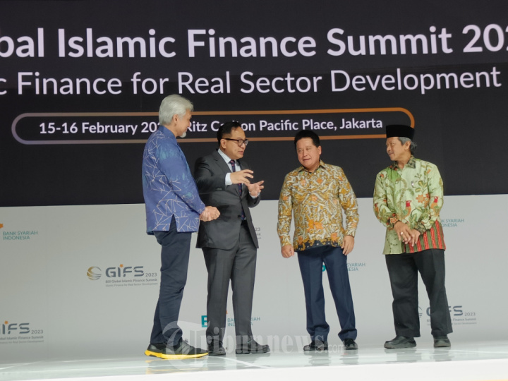 TRIBUNNEWS.COM, JAKARTA - (KiKa) Komisaris Utama PT Bank Syariah Indonesia Tbk (BSI) Adiwarman Azwar Karim, Wakil Menteri BUMN Kartika Wirjoatmodjo, Direktur Utama BSI Hery Gunardi dan Ketua Dewan Pengawas Syariah BSI Hasanudin saat ceremony acara BSI Global Islamic Finance Summit 2023. Acara internasional summit keuangan syariah ini merupakan kali pertama dan terbesar yang digelar oleh bank syariah di Indonesia. Harapannya acara ini memberikan insight dan memberikan kontribusi nyata untuk kemajuan keuangan syariah dalam pengembangan sektor riil di Indonesia. //IST/HO