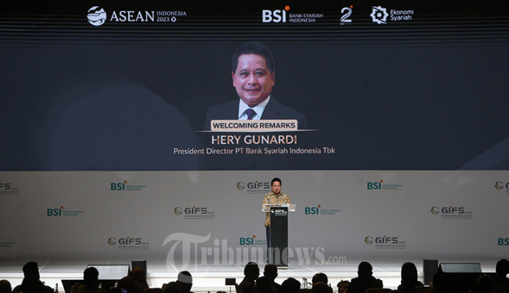 TRIBUNNEWS.COM, JAKARTA - Direktur Utama BSI Hery Gunardi memberi sambutan saat ceremony acara BSI Global Islamic Finance Summit 2023. Acara internasional summit keuangan syariah ini merupakan kali pertama dan terbesar yang digelar oleh bank syariah di Indonesia. Harapannya acara ini memberikan insight dan memberikan kontribusi nyata untuk kemajuan keuangan syariah dalam pengembangan sektor riil di Indonesia. //IST/HO