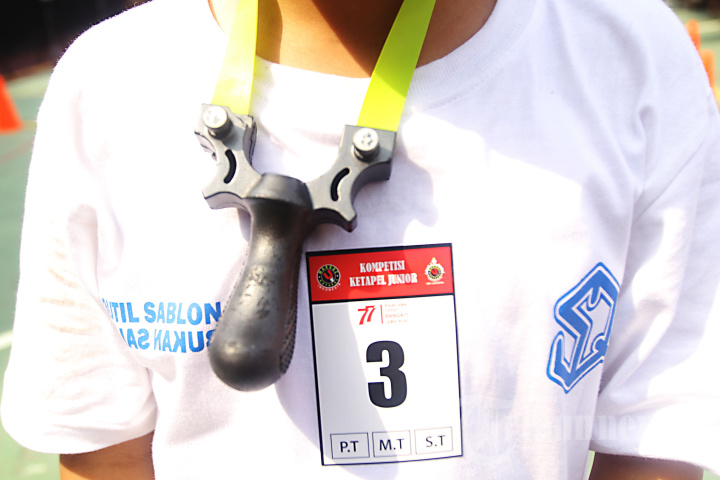 Ketapel yang digunakan peserta pada Kompetisi Ketapel Junior di Markaz Ketapel Indonesia, Jakarta Timur, Minggu (21/8/2022), Kompetisi diikuti peserta usia 7 hingga 16 tahun dan berasal dari Jakarta, Tangerang, Bandung, dan Solo. Ada tiga kategori yang bisa diikuti yaitu kategori paper target, kategori multi target, dan kategpri single target. TRIBUNNEWS/HERUDIN