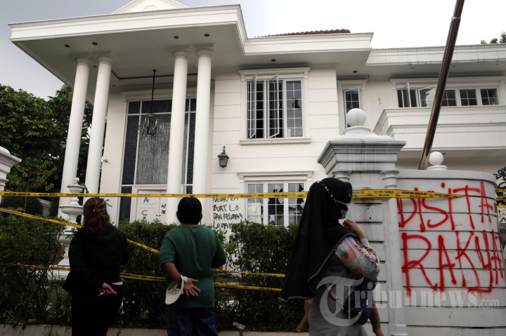 Warga nelihat rumah Anggota DPR Surya Utama atau Uya Kuya yang berantakan usai didatangai massa tak dikenal di Pondok Bambu, Jakarta Timur, Minggu (31/8/2025). Rumah Uya Kuya didatangi massa tak dikenal pada Sabtu (30/8/2025) malam dan menjarah barang-barang serta melakukan tindakan vandalisme. TRIBUNNEWS/IRWAN RISMAWAN
