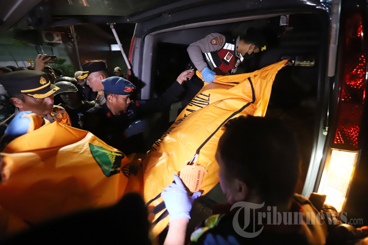 Petugas mengangkat kantong jenazah korban kebakaran Depo Pertamina Plumpang di kawasan Jalan Koramil, Rawa Badak Selatan, Koja, Jakarta Utara, Sabtu (4/3/2023) dini hari. Sebanyak 13 orang dilaporkan tewas akibat kebakaran hebat yang melanda Depo Pertamina Plumpang dan merembet ke permukiman di sekitarnya. TRIBUNNEWS/JEPRIMA
