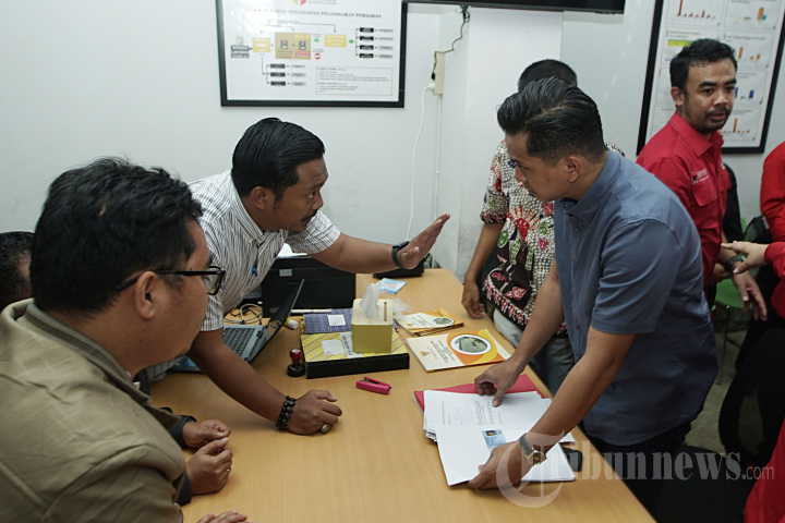 Kepala Badan Saksi Pemilu Nasional (BSPN) DPP PDI Perjuangan Hendra Gunawan, Ketua DPC PDI Perjuangan Jakarta Timur Dwi Rio Sambodo dan sejumlah kader PDI Perjuangan menyerahkan berkas laporan di Bawaslu DKI Jakarta, Senin (19/3/2024). DPD PDI Perjuangan bersama anggota Fraksi PDI Perjuangan DPRD DKI Jakarta secara resmi melaporkan ke Bawaslu DKI Jakarta terkait temuan pencatutan KTP milik masyarakat DKI Jakarta dan kader PDI Perjuangan oleh salah satu pasangan calon independen dalam proses verifikasi calon Gubernur DKI Jakarta. Tribunnews/Jeprima