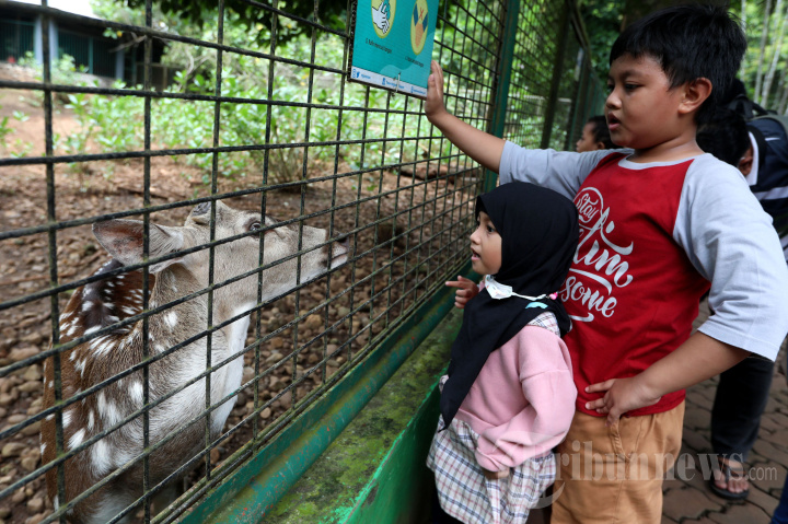 Wisatawan mengamati rusa di Taman Margasatwa Ragunan, Jakarta Selatan, Selasa (3/5/2022). Taman Margasatwa Ragunan dipadati wisatawan yang menikmati liburan di hari kedua Idul Fitri 1443 H. TRIBUNNEWS/IRWAN RISMAWAN