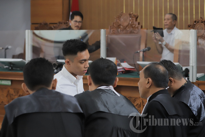 Terdakwa Mario Dandy Satriyo berbincang dengan kuasa hukumnya sebelum menjalani sidang dengan agenda mendengarkan pembacaan tuntutan dari Jaksa Penuntut Umum (JPU) di Pengadilan Negeri Jakarta Selatan, Selasa (15/8/2023). JPU menuntut Mario Dandy dihukum 12 tahun penjara, Jaksa menilai pelaku penganiayaan Crystalino David Ozora itu terbukti secara sah dan meyakinkan. JPU memaparkan bahwa perbuatan Mario Dandy sangat tidak manusiawi, dilakukan secara sadis, dan brutal. Akibatnya, David Ozora mengalami cedera otak dan amnesia. Tribunnews/Jeprima