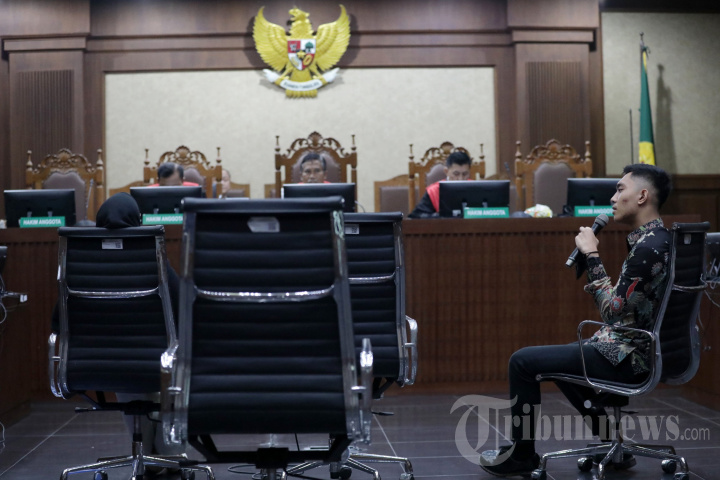 Terpidana kasus penganiayaan Mario Dandy bersaksi pada sidang lanjutan kasus gratifikasi dan tindak pidana pencucian uang (TPPU) dengan terdakwa Rafael Alun Trisambodo di Pengadilan Tipikor, Jakarta, Senin (6/11/2023). Sidang tersebut beragendakan mendengarkan keterangan dua saksi dari jaksa penuntut umum (JPU), yaitu Mario Dandy yang merupakan terpidana kasus penganiayaan berat dan Accounting Bilik Kopi Equity Ikhfa Fauziah. TRIBUNNEWS/IRWAN RISMAWAN