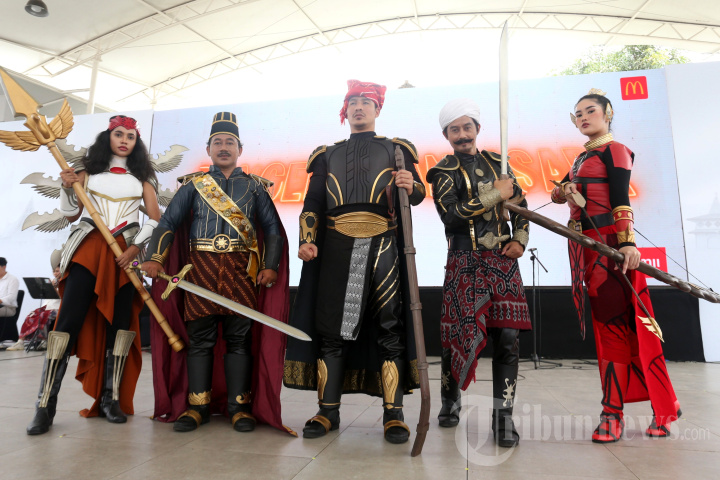 Aksi Cosplay dengan atribut pahlawan nasional saat perayaan hari pahlawan di Museum Keprajuritan Indonesia Taman Mini Indonesia Indah, Jakarta, Minggu (17/11/2024). McDonald???s Indonesia, di bawah naungan PT Rekso Nasional Food, kembali menghadirkan beragam aktivitas menarik untuk merayakan Hari Pahlawan. Tahun ini, melalui kampanye aksi cosplay pahlawan nasional, McDonald???s Indonesia mengajak masyarakat untuk lebih mengenal kisah dan jasa para pahlawan nasional dengan ragam aktivitas yang berlangsung mulai dari 8 November 2024 hingga 5 Februari 2025 yang bertujuan untuk menumbuhkan jiwa nasionalisme pada generasi muda. TRIBUNNEWS/IRWAN RISMAWAN