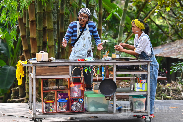 Gambar yang diambil pada tanggal 9 Oktober 2022 ini menunjukkan seniman Indonesia dari proyek Kahanane tampil di International Biennale Puppet Festival ke-8 di Yogyakarta. (Photo by Adek BERRY / AFP)