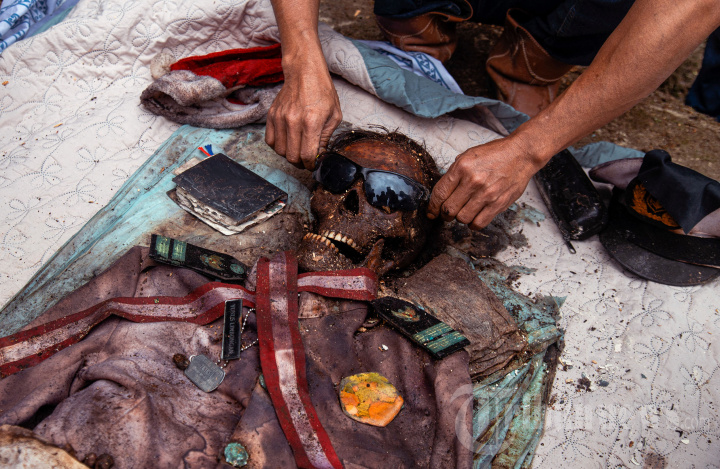 Gambar yang diambil pada 16 Agustus 2022 ini menunjukkan anggota suku Toraja sedang mempersiapkan jenazah kerabat yang digali dari situs pemakaman masyarakat, untuk dibersihkan dan didandani dalam serangkaian upacara tradisional untuk menghormati orang yang meninggal yang dikenal sebagai "Manene", di Torea desa di Toraja Utara, Sulawesi Selatan Indonesia. - Di sebuah desa di pulau Sulawesi, Indonesia, penduduk menarik peti mati yang menyimpan mayat orang yang mereka cintai dari gua pemakaman yang diukir di lereng gunung dalam ritual untuk kehidupan setelah kematian. (Photo by ANDRI SAPUTRA / AFP)