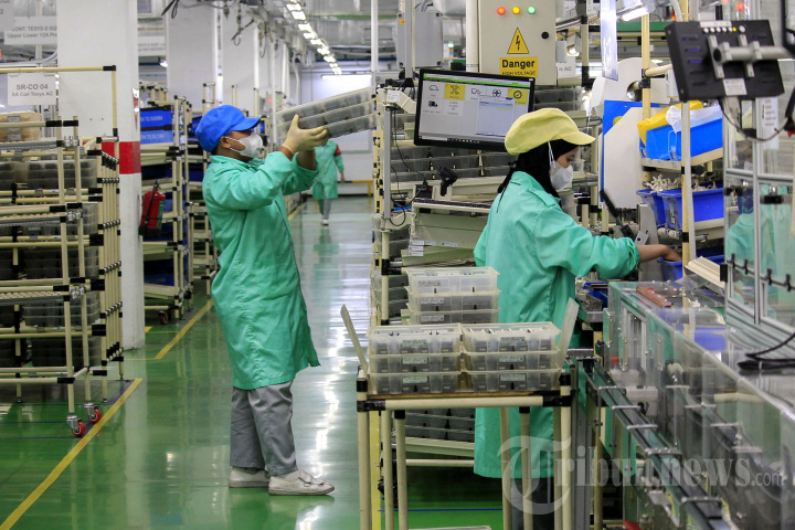 Pekerja merakit komponen yang diproduksi pabrik pintar Schneider Electric yang ada di Kawasan Industri Batamindo, Kota Batam, Kepulauan Riau, Jumat (24/6/2022). Schneider Electric merupakan salah satu pabrik pintar pertama di Indonesia yang telah memanfaatkan jaringan 5G untuk kegiatan operasionalnya. TRIBUN BATAM/ARGIANTO DA NUGROHO