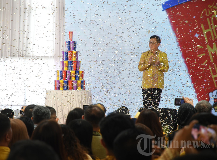 MOORLIFE TUMBLER PENYEMANGAT - Founder & President Moorlife Herman Tanoko memperkenalkan "Moorlife Tumbler Penyemangat" menandai resmi dibukanya pabrik terbesar Moorlife di Indonesia di Nganjuk Jawa Timur, Senin (4/12/2023). Pabrik Moorlife Nganjuk saat ini dibangun diatas lahan seluas 3,5 ha dengan menargetkan setiap bulannya mampu memproduksi hingga 800 ton 'plasticware' melalui 60 mesin yang dioperasikan 350 pekerja. (SURYA/Habibur Rohman)