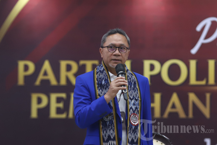Ketua Umum Partai Amanat Nasional (PAN) Zulkifli Hasan memberikan kata sambutan disela-sela penyerahan berkas pendaftaran partai politik calon peserta Pemilu 2024 di gedung KPU, Jakarta, Rabu (10/8/2022). PAN secara resmi mendaftarkan diri sebagai salah satu calon partai peserta Pemilu 2024 ke KPU. Tribunnews/Jeprima