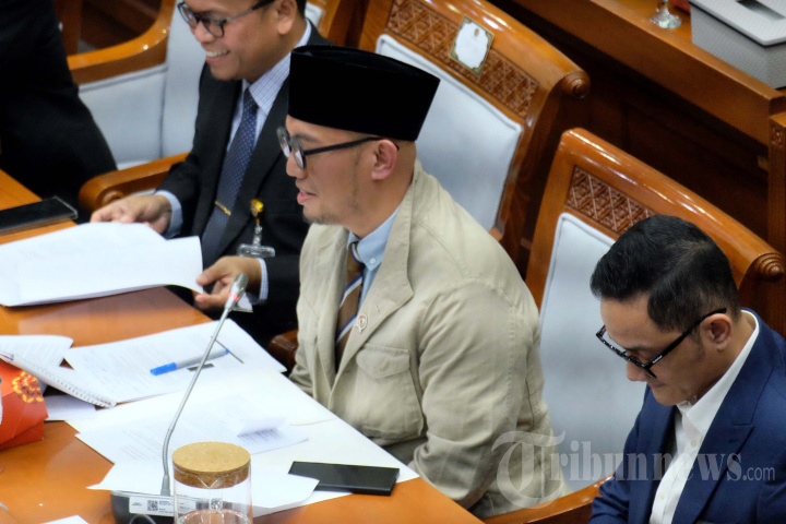 RAKER DPR - Wakil Menteri Haji dan Umrah Dahnil Anzar Simanjuntak menyampaikan pandangan pada rapat Panja BPIH di Kompleks Parlemen, Senayan, Jakarta, Rabu (29/10/2025). Panja DPR dan Pemerintah menyepakati Biaya Penyelenggaraan Ibadah Haji (BPIH) tahun 1447 Hijriah atau 2026 Masehi sebesar Rp87,4 juta. TRIBUNNEWS/IRWAN RISMAWAN