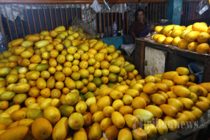 Pedagang menjajakan timun suri di kawasan Pasar Palmerah, Jakarta Pusat, Senin (4/4/2022) malam. Buah khas bulan Ramadan ini mulai marak dijual memasuki hari ketiga puasa. Timun suri dijual mulai Rp 10.000 hingga Rp 12.000 per kilogram. WARTA KOTA/YULIANTO