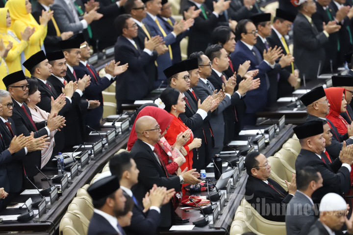 Sejumlah anggota DPR serta para pejabat negara menghadiri acara sidang paripurna MPR dengan agenda pelantikan Presiden dan wakil Presiden di Gedung Nusantara, Kompleks Parlemen, Senayan, Jakarta, Minggu (20/10/2024). Prabowo Subianto dan Gibran Rakabuming Raka resmi menjabat sebagai Presiden dan Wakil Presiden Republik Indonesia masa bakti 2024-2029. Tribunnews/Jeprima