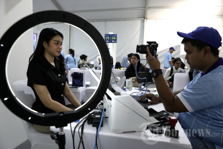 PELAYANAN PASPOR - Petugas melayani pembuatan paspor warga pada acara IMIFEST 2025 di Hutan Kota GBK, Senayan, Jakarta, Minggu (16/11/2025). Direktorat Jenderal Imigrasi menyelenggarakan IMIFEST 2025 dalam perayaan Hari Bakti Kementerian Imigrasi dan Pemasyarakatan dengan membuka kuota layanan 1.000 paspor yang meliputi pembuatan paspor baru dan penggantian paspor yang habis masa berlakunya. TRIBUNNEWS/IRWAN RISMAWAN
