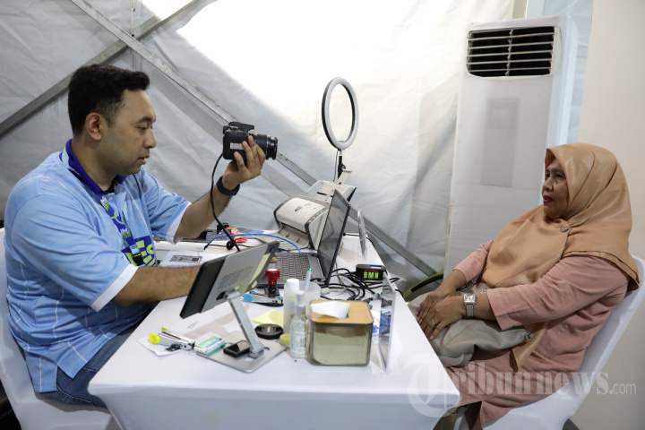 PELAYANAN PASPOR - Petugas melayani pembuatan paspor warga pada acara IMIFEST 2025 di Hutan Kota GBK, Senayan, Jakarta, Minggu (16/11/2025). Direktorat Jenderal Imigrasi menyelenggarakan IMIFEST 2025 dalam perayaan Hari Bakti Kementerian Imigrasi dan Pemasyarakatan dengan membuka kuota layanan 1.000 paspor yang meliputi pembuatan paspor baru dan penggantian paspor yang habis masa berlakunya. TRIBUNNEWS/IRWAN RISMAWAN