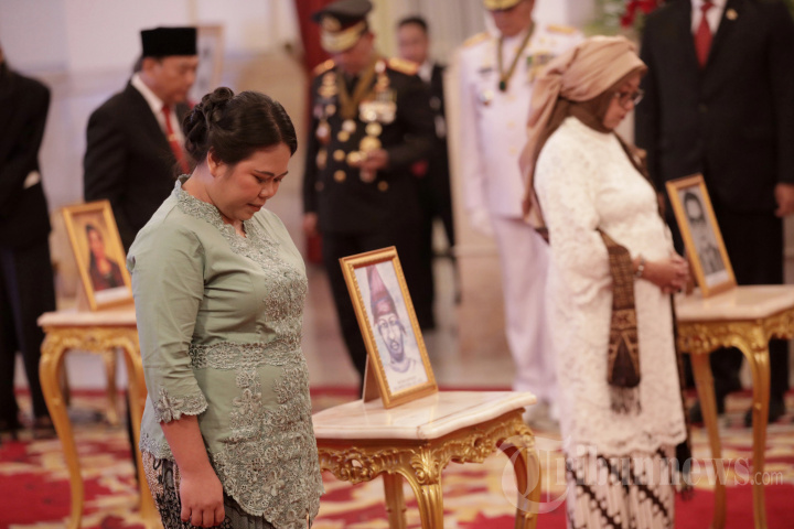 Sejumlah ahli waris tokoh mengikuti pemberian gelar Pahlawan Nasional di Istana Negara, Jakarta, Jumat (10/11/2023). Memperingati Hari Pahlawan Nasional pemerintah memberikan gelar Pahlawan Nasional kepada enam tokoh di Indonesia yakni Ida Dewa Agung Jambe dari Bali, Bataha Santiago dari Sulawesi Utara, M. Tabrani dari Jawa Timur, Ratu Kalinyamat dari Jawa Tengah, Abdul Chalim dari Jawa Barat, dan Ahmad Hanafiah dari Lampung. TRIBUNNEWS/IRWAN RISMAWAN