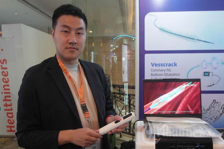 PEMBUKAAN ISICAM 2025 - Petugas alat kesehatan yang dipajang saat opening ceremony Indonesian Society of Interventional Cardiology Annual Meeting (ISICAM) ke-17 di Hotel Shangri-La, Jakarta Selatan, Kamis (6/11/2025). ISICAM 2025 mengangkat tema Back to Fundamentals – Kembali ke Fondasi, Maju dengan Inovasi, yang menegaskan pentingnya kembali memahami dasar ilmu kedokteran intervensi jantung sebelum melangkah lebih jauh ke arah inovasi dan teknologi modern. Konferensi tahunan ini menjadi wadah terbesar bagi para profesional di bidang intervensi kardiovaskular di Indonesia untuk bertukar ilmu, teknologi, dan pengalaman terbaru. Tribunnews/Jeprima