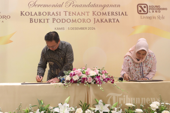 Regional Marketing Director 2 PT Agung Podomoro Land Tbk. Zaldy Wihardja bersama perwakilan dari tenant melakukan Penandatangan Kolaborasi Tenant Komersial Bukit Podomoro Jakarta, Kamis (5/12/2024). Kehadiran tenant-tenant berkualitas ini akan melengkapi area komersial Bukit Podomoro Business Park di kawasan Bukit Podomoro Jakarta yang diproyeksikan menjadi The Most Exclusive Shophouse yang terbesar dan ternyaman di Jakarta Timur. Tribunnews/Jeprima