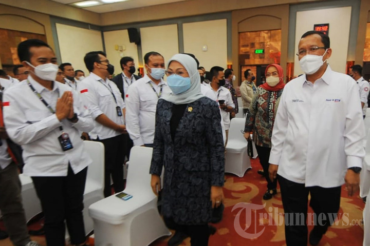 Menteri Ketenagajeraan (Menaker) Ida Fauziyah didampingi Direktur Utama Bank BTN Haru Koesmahargyo dan Ketua Umum DPP Serikat Pekerja (SP) BTN Rizky Novriady saat menghadiri acara penandatanganan Perjanjian Kerja Bersama (PKB) Tahun 2022 di Jakarta, Kamis (18/8). Menaker mengapresiasi atas proses yang cepat dalam PKB tersebut yang disepkati antara pihak manajemen BTN dengan SP. Dengan penandatangan PKB tersebut, diharapkan dapat menciptakan kolaborasi yang positif guna mewujudkan visi Bank BTN menjadi The Best Mortgage Bank In Southeast Asia Pada Tahun 2025. Tribunnews/Jeprima