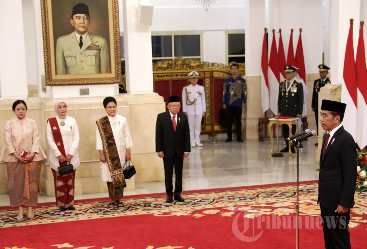 Presiden Joko Widodo memimpin Penganugerahan Tanda Kehormatan Republik Indonesia di Istana Negara, Jakarta, Rabu (14/8/2024). Presiden Joko Widodo menganugerahi Tanda Jasa dan Tanda Kehormatan kepada 64 tokoh bangsa yang terdiri dari kalangan menteri dan wakil menteri KIM, pejabat lembaga tinggi negara, pejabat pimpinan lembaga pemerintah dan non-kementerian, pejabat TNI dan Polri, WNI dengan latar belakang profesi, dan budayawan atas kontribusi mereka dalam berbagai bidang selama masa pemerintahan Presiden Jokowi dan Wapres Ma'ruf Amin. TRIBUNNEWS/IRWAN RISMAWAN