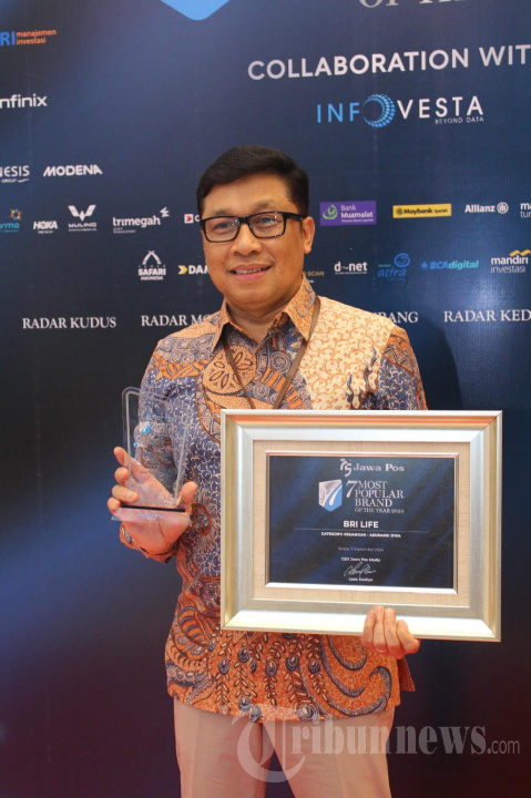 Direktur Pemasaran BRI Life Sutadi menerima Piagam Penghargaan 7 Most Popular Brand of the Year 2024 kategori Keuangan Asuransi Jiwa, di Jakarta. BRI Life selalu berupaya untuk meningkatkan awarenees, dengan terus meningkatkan kualitas produk dan layanan jasa asuransi agar lebih dikenal oleh masyarakat sebagai salah satu perusahaan asuransi yang terpercaya, dalam memberikan solusi jaminan perlindungan asuransi jiwa dan kesehatan. TRIBUNNEWS/HO