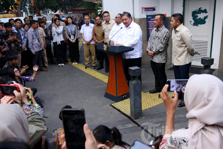 STIMULUS EKONOMI - Menteri Koordinator Bidang Perekonomian Airlangga Hartarto didampingi Menteri Sekretaris Negara Prasetyo Hadi, Sekretaris Kabinet Teddy Indra Wijaya, Menteri Sosial Saifullah Yusuf, Wakil Menteri Ketenagakerjaan Afriansyah Noor dan Kepala Badan Komunikasi Pemerintah Angga Raka Prabowo saat mengumumkan paket stimulus ekonomi jilid 4 di Jakarta, Jumat (17/10/2025). Pemerintah meluncurkan paket stimulus ekonomi sebagai bagian dari upaya memperkuat daya beli masyarakat dan mendorong penciptaan lapangan kerja di kuartal IV/2025. Dua program utama dalam stimulus keempat ini yaitu tambahan Bantuan Langsung Tunai (BLT) dan program magang untuk lulusan perguruan tinggi. TRIBUNNEWS/IRWAN RISMAWAN